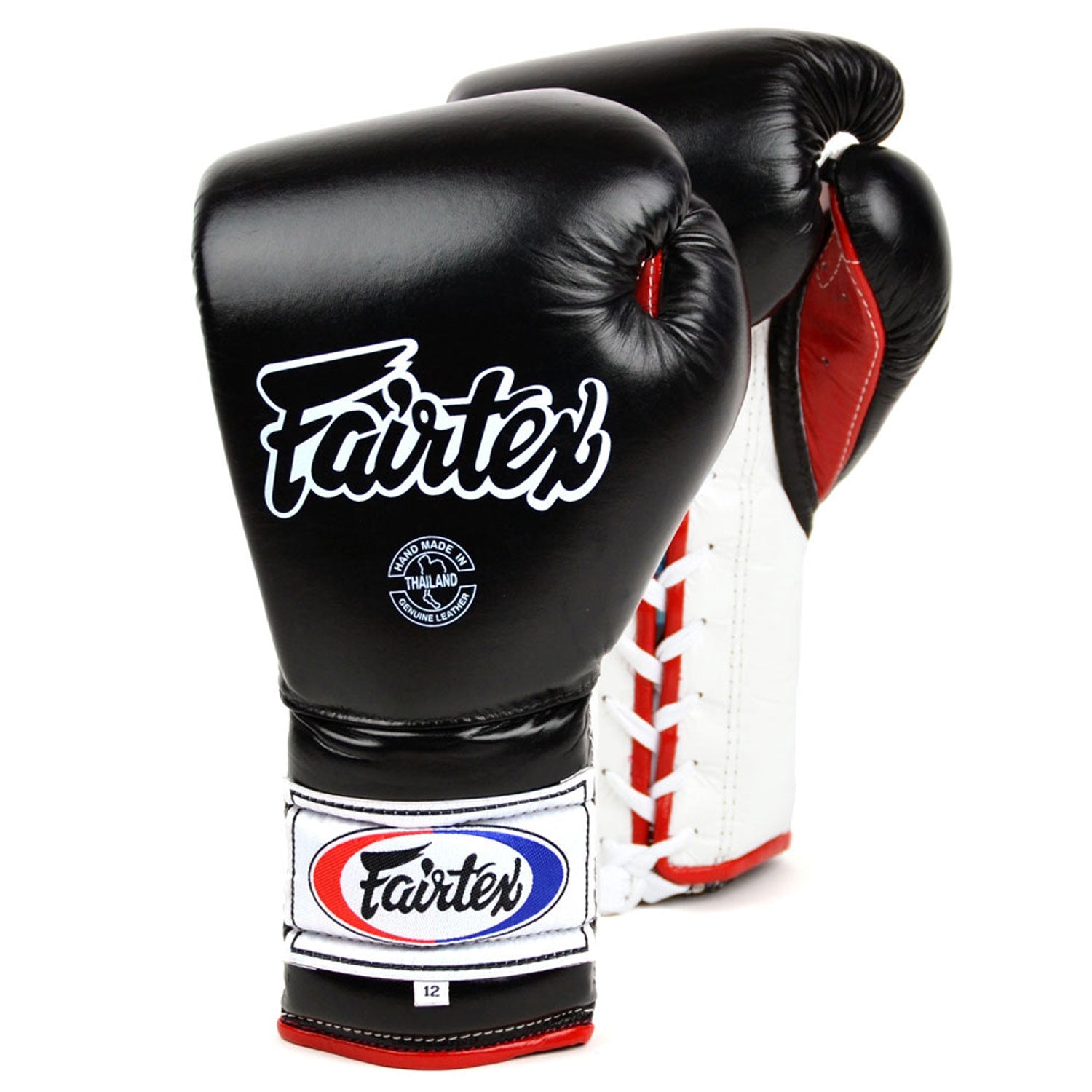 Fairtex BGL7 Mexican-Style Lace-up Training Gloves - Black-White-Red